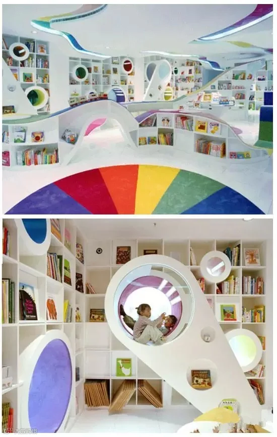 这是日本的绘本图书馆,像游乐场一样,孩子们可以钻到小洞洞里去读书!