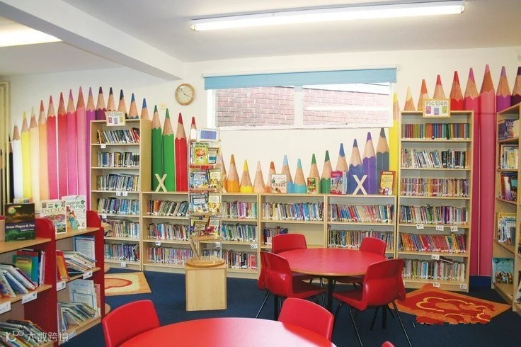 笔是画在墙上的,但是让这个图书馆的氛围一下子变得非常多彩、活泼,没准家里也能试试?