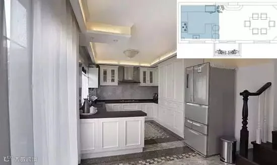 点评:很多业主常为厨房油烟污染内室而烦恼,有这样一个连接厨房与其他内室的楼梯,设计师当然会大加利用,不仅美观,还隔绝了油烟问题。