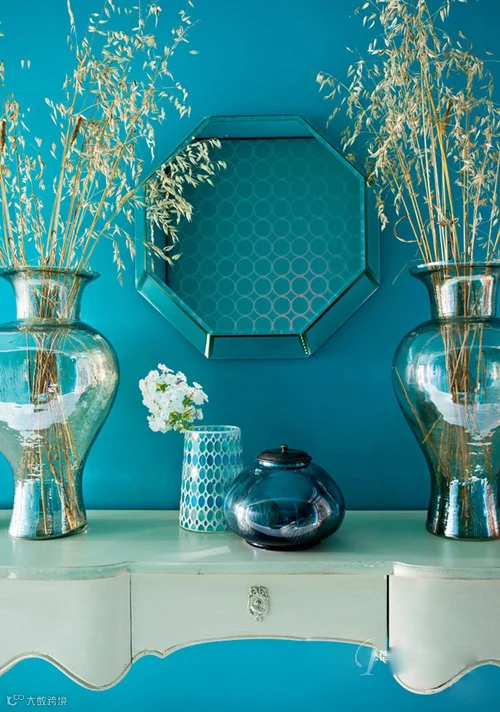 如果天鹅代表了西方,那么美丽的孔雀则能代表东方。在白色和奶油色的衬托下,孔雀蓝的美纯净得让目光停止,仿佛一头扎进大海深处,它营造出安宁而沉静的居室氛围,让人不得不爱。