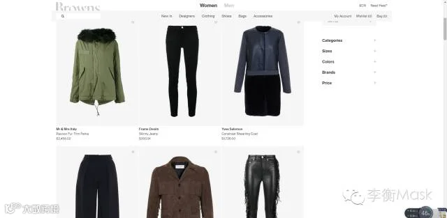 Browns,英国电商,品牌不多,东西也不多,但有少量CL,其它电商没有。