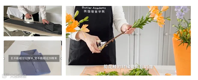 1+X家务管理职业技能等级考试(中级)由理论考试和实操考核两部分组成,其中的实操考核项目包括西餐制作、衣物熨烫收纳和家居插花。