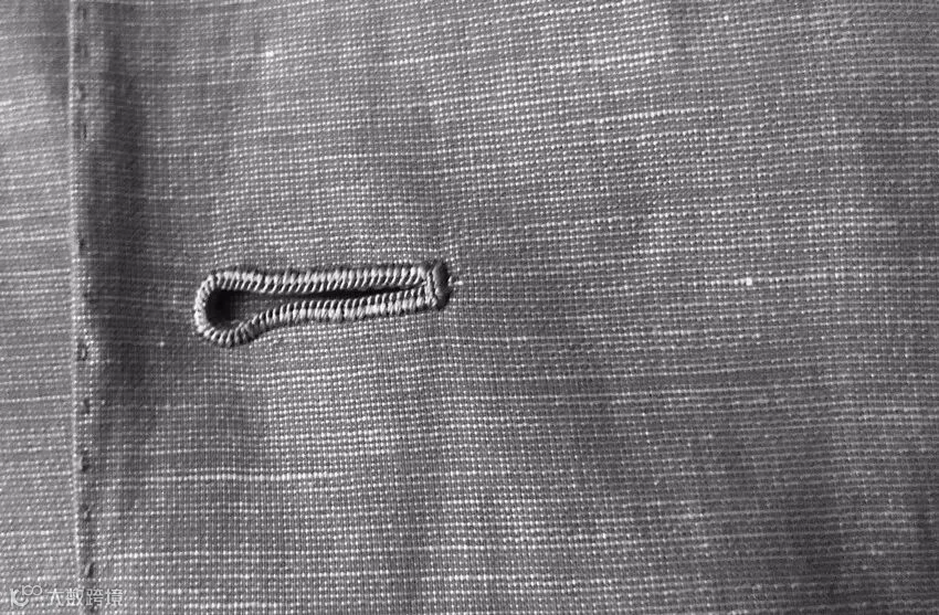 扣眼也都是经由人手,先用圆头凿子开出扣眼的圆端,再切开固定的长度。最后再手工锁边。经由手工锁边的扣眼立体饱满有层次,扣眼内无面料毛刺,结构上也更牢固。