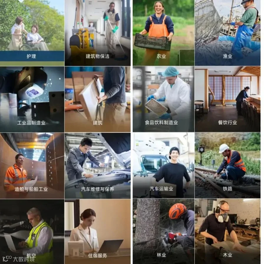 还有一个是特定技能签证,如果经营管理签证是创业当老板的,那这个特定技能签证就是专属牛马打工人的签证了。