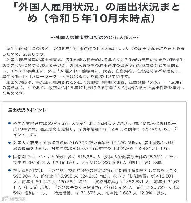 作为亚洲发达国家,日本长期面临劳动力短缺问题。其“研修生制度”和“特定技能签证”为外籍劳动者提供了合法务工通道。根据日本厚生劳动省数据,2024年在日外国劳动者达205万人,其中中国人占比近19.4%。