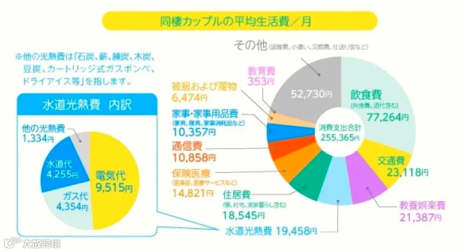 据调查显示,日本两口之家每月的平均开销为25.5365万日元。