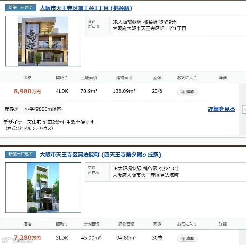 为了满足市场的需求,已经有不少投资者开始在大阪各片区新建一户建民宿。天王寺区、港区、生野区等片区中古一户建民宿中,老物件比例达90%,新筑一户建占比较少。homes官网新建优质民宿一户建最早24年12月交付,价格更是翻两倍。