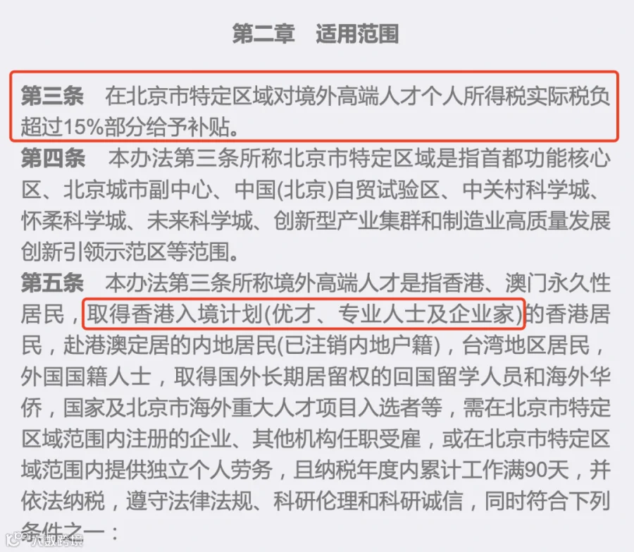 目前,内陆许多城市也陆续加入到这个境外高端人才补贴政策来,比如北京特定区域(首都功能核心区、城市副中心、自贸试验区、各科学城等)。