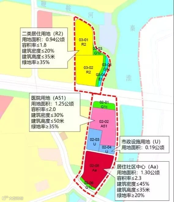 根据规划方案显示,该规划管理单元内,设有一处医院用地,一处市政设施用地,一处居住社区中心用地,以及一处二类居住用地(R2)。