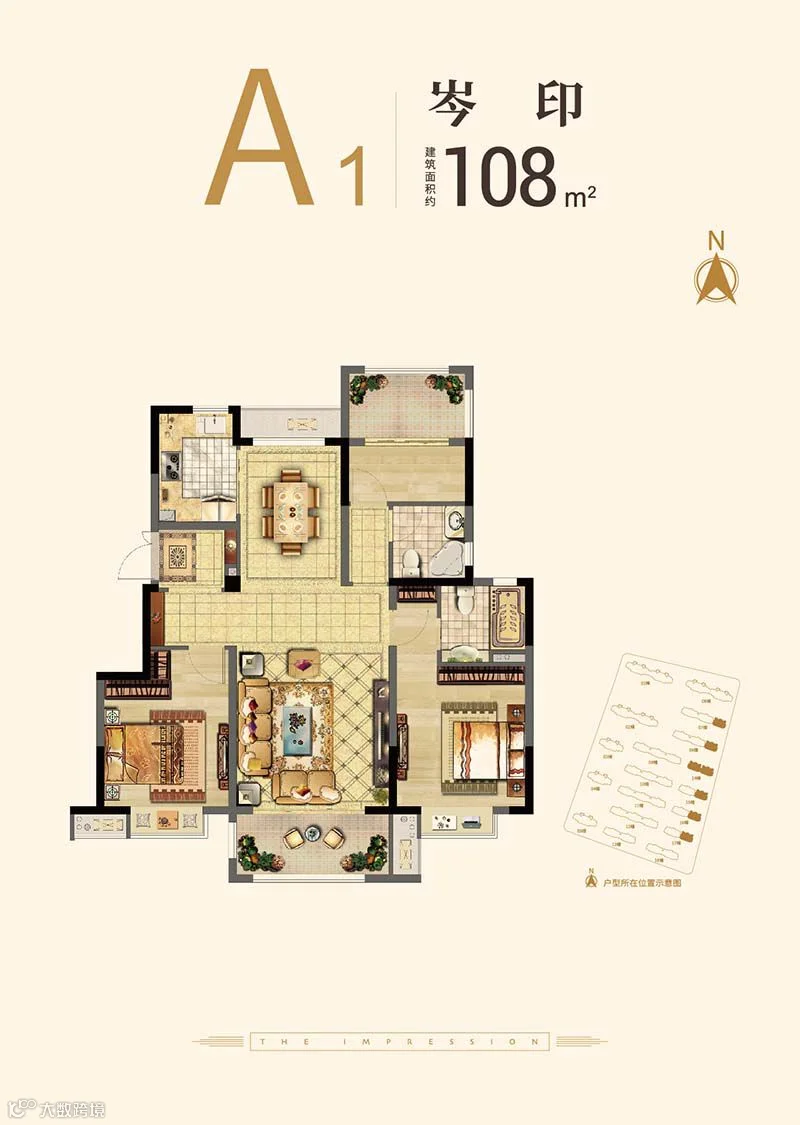 建筑面积:约108㎡