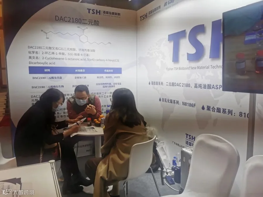 滔盛弘产品以天然植物油脂肪酸为原料,研发生产油脂化学品,属于可再生和持续发展的天然化学产品,减少化工产品对石油化学品的依赖,从而减少对环境的影响。滔盛弘此次参展带来了多款头部产品,包括,脂肪酸系列:二元酸DAC 2180、高纯油酸ASP1880、三元酸TAC2285;自乳化酯系列:N8186F;聚合酯系列:8100。所应用的领域包括环保润滑剂、工业及家居清洗、日化洗护、树脂乳液、涂料油墨、塑料聚合物等。