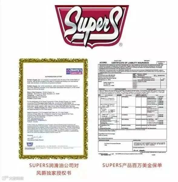 Supers译名:速派,速派工厂为美国通用汽车公司指定御用全车油液供应商,而风爵汽车养护中心全国连锁店是速派的中国独家代理商,百万美金保证。
