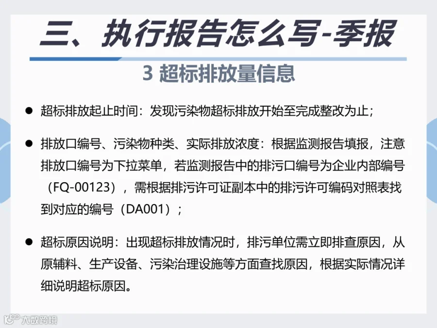 特别注意:若报告周期内存在停产、污染物排放异常或超标等情况,必须在执行报告中如实说明并分析原因。