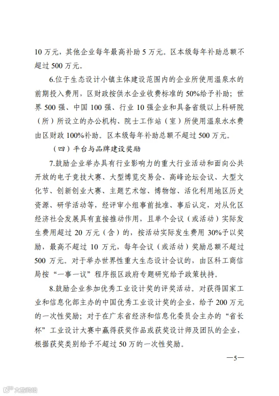 市从化区支持生态设计小镇发展的若干措施的通知(从府规[2020]14号)
