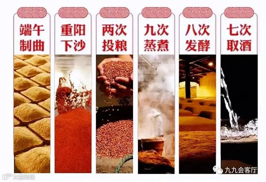 经过一年生产周期、两次投料、九次蒸煮、八次发酵、七次取酒