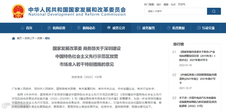 包括优化邮轮游艇行业发展市场准入环境、统一构建海陆空全空间无人系统准入标准和开放应用平台、放宽航空领域准入限制、支持深圳统一布局新能源汽车充换电基础设施建设和运营。