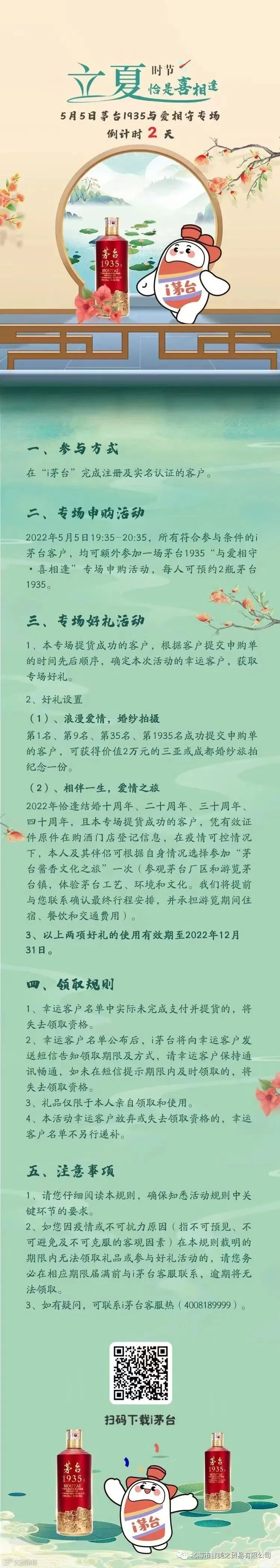 茅台1935 与爱相守•喜相逢专场5月5日开启!
