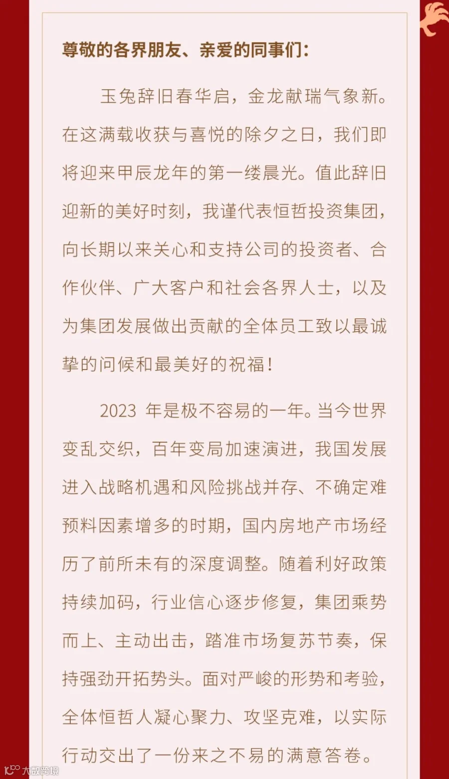 恒哲投资集团2024新年献词 | 稳中求进,信以致远