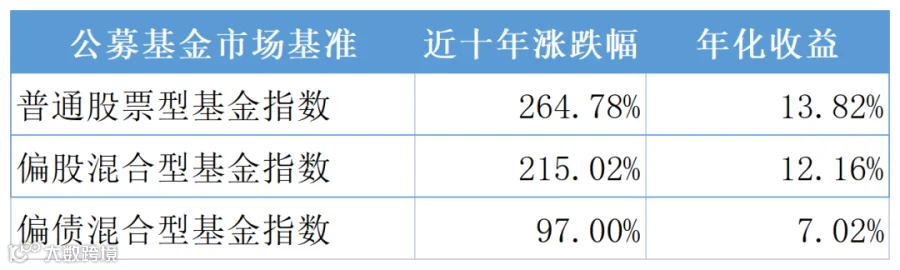 数据显示,目前全国社保基金18家境内委托投资管理人中,公募基金就占据16席;此外,近10年普通股票型基金指数、偏股混合型基金指数平均年化收益率分别达到13.82%、12.16%。