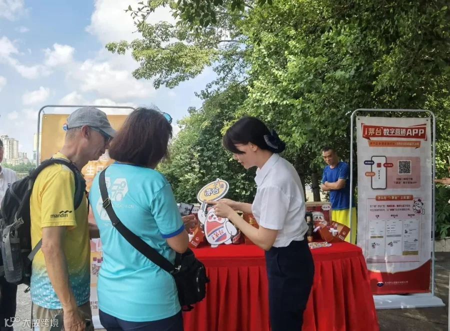 广西鸿旗在柳州市环江风景区开展i茅台线下推广活动。工作人员热情引导过往游客安装注册i茅台、探索小茅的趣味玩法,让大家在丰富而惊喜的线上活动中领略数字茅台的创新之美。