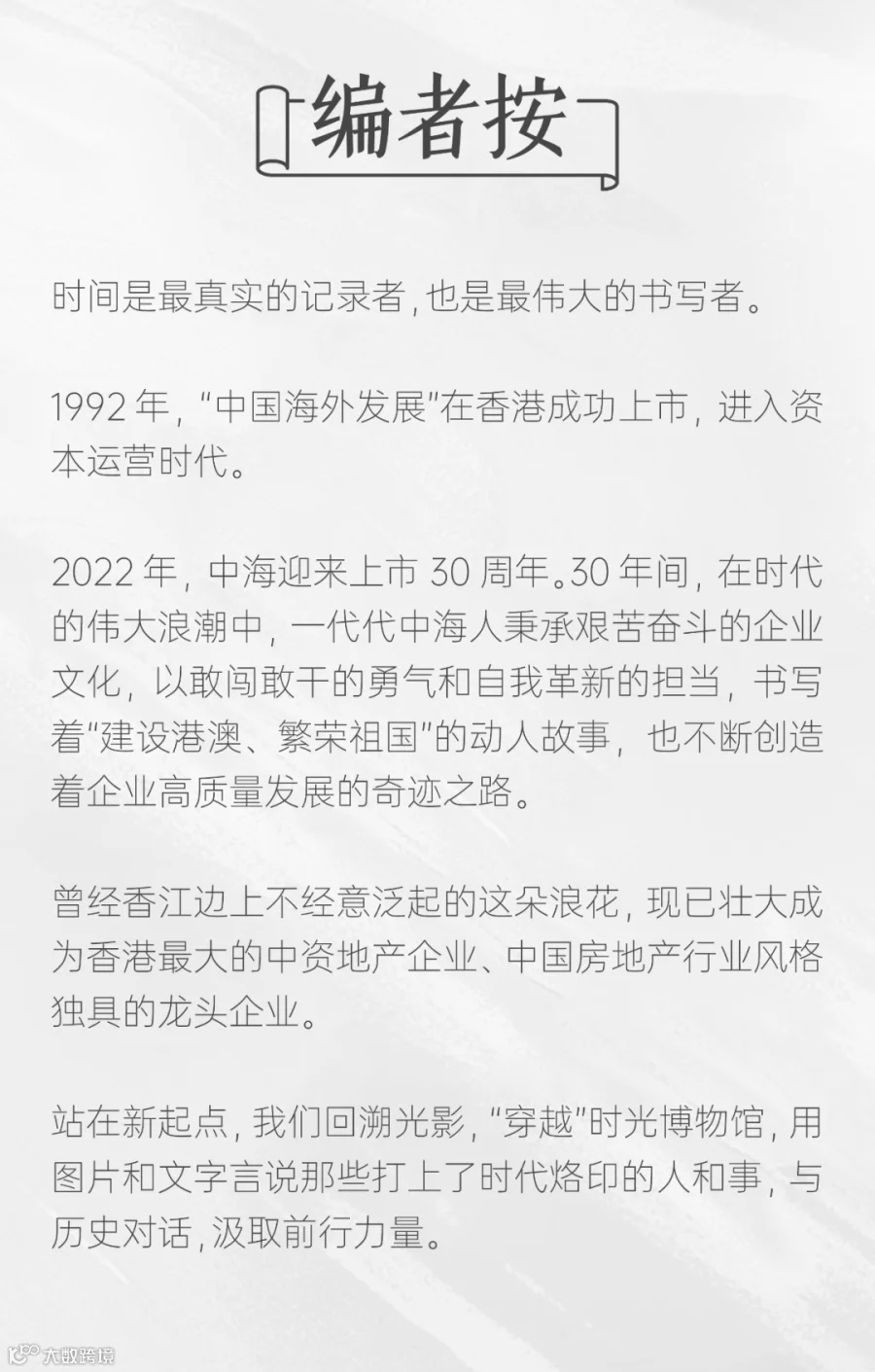 中海成立43年、上市30年以来,历经多轮经济及行业周期,凭借“长期主义”“稳健发展”,走出一条高质量发展之路,得到了市场认可和投资者追捧。