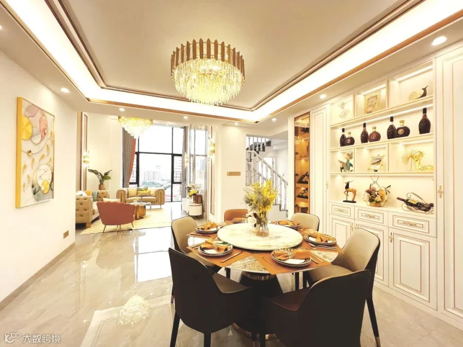 约40平米的客餐厅,尽显大宅的空间感,特别是轻奢风的装修,让整个客厅餐厅再提升一个档次 。