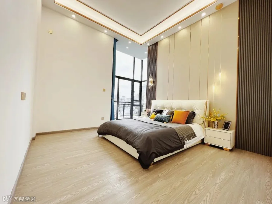 整个空间约有35个平方,2米的床,轻松摆放。 外面还连接8米长的景观阳台,闲时阳台看看书喝杯咖啡,也是种不一样的市区生活体验。