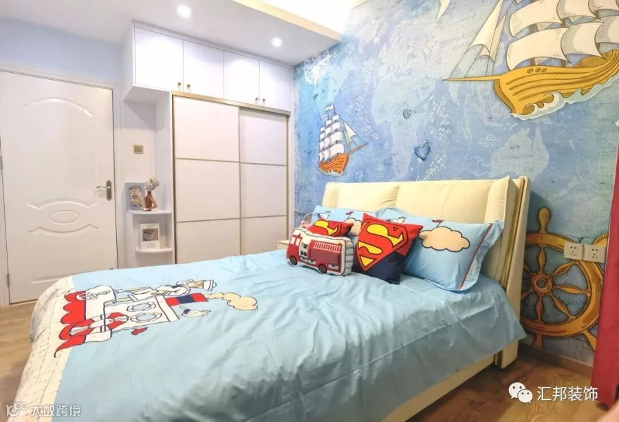 每天最舒服的时刻就是下班回家躺在柔软的床上休息,仿佛所有的烦恼都被忘记。主卧的设计在轻奢中偏简约,落地飘窗为房间提供充足的采光,给予空间低调奢华的感觉。次卧相比其他房间更显年轻,卡通背景墙搭配公仔摆件,增添可爱和谐氛围,不同色调色系的卧室房间创造出独特风格的惬意生活。