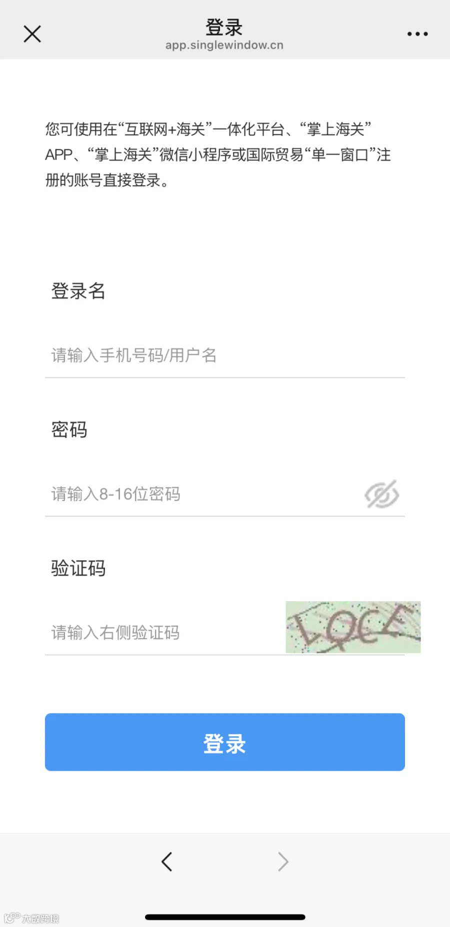 点击“中国海关信用管理”微信公众号下面的“服务平台”按钮即可进入。