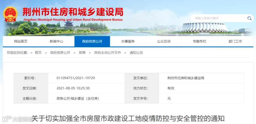 8月5日,甘肃省住建厅发布《关于全面加强房屋市政工程施工工地疫情防控工作的紧急通知》: