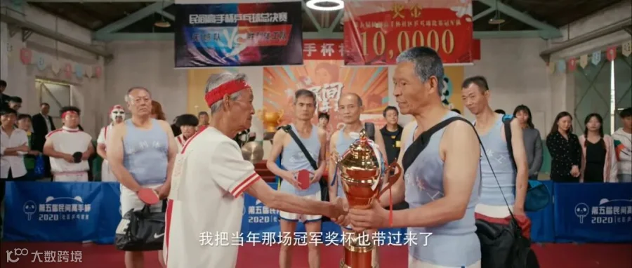 电影中,杨双喜(蘑菇头)跟老年痴呆的爷爷杨国强(妹大爷)相依为命,当年为了照顾杨双喜,爷爷放弃了乒乓球冠军决赛的机会,抱憾30年。