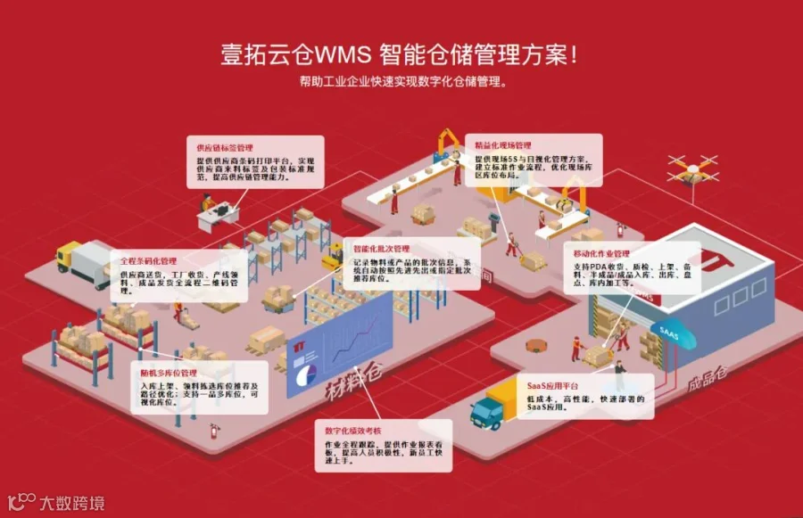 壹拓云仓是由智森科技研发推出的WMS仓储管理云平台,也是国内最早saas化的wms产品,专注于工业制造领域,被誉为“工业互联网首选WMS”,帮助1500+仓库实现智能化管理,在汽配、机械五金、注塑、灯饰照明、电子等多个行业拥有成功案例。