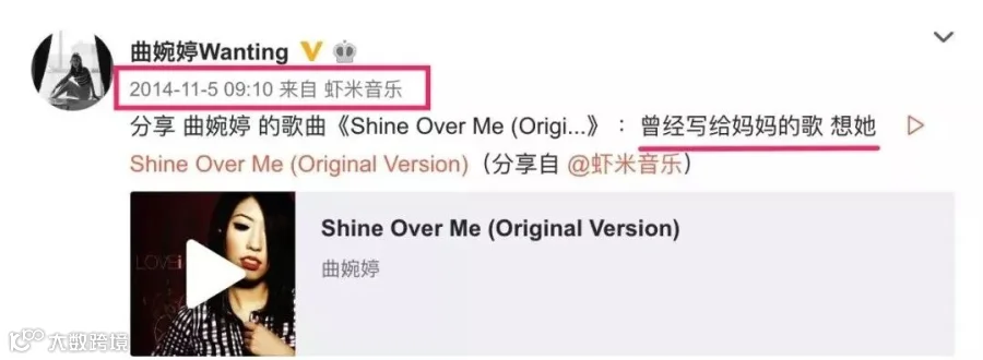 有人考古曲婉婷的微博发现,在她妈妈被带走的大半年里,曲只在2014年11月的时候发过一次想妈妈,但是后面配了自己的新歌宣传......
