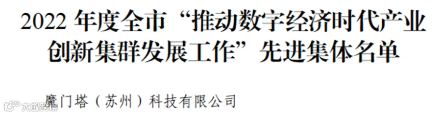 魔门塔(Momenta)获苏州市人民政府2022年度全市“推动数字经济时代业创新集群发展工作”先进集体
