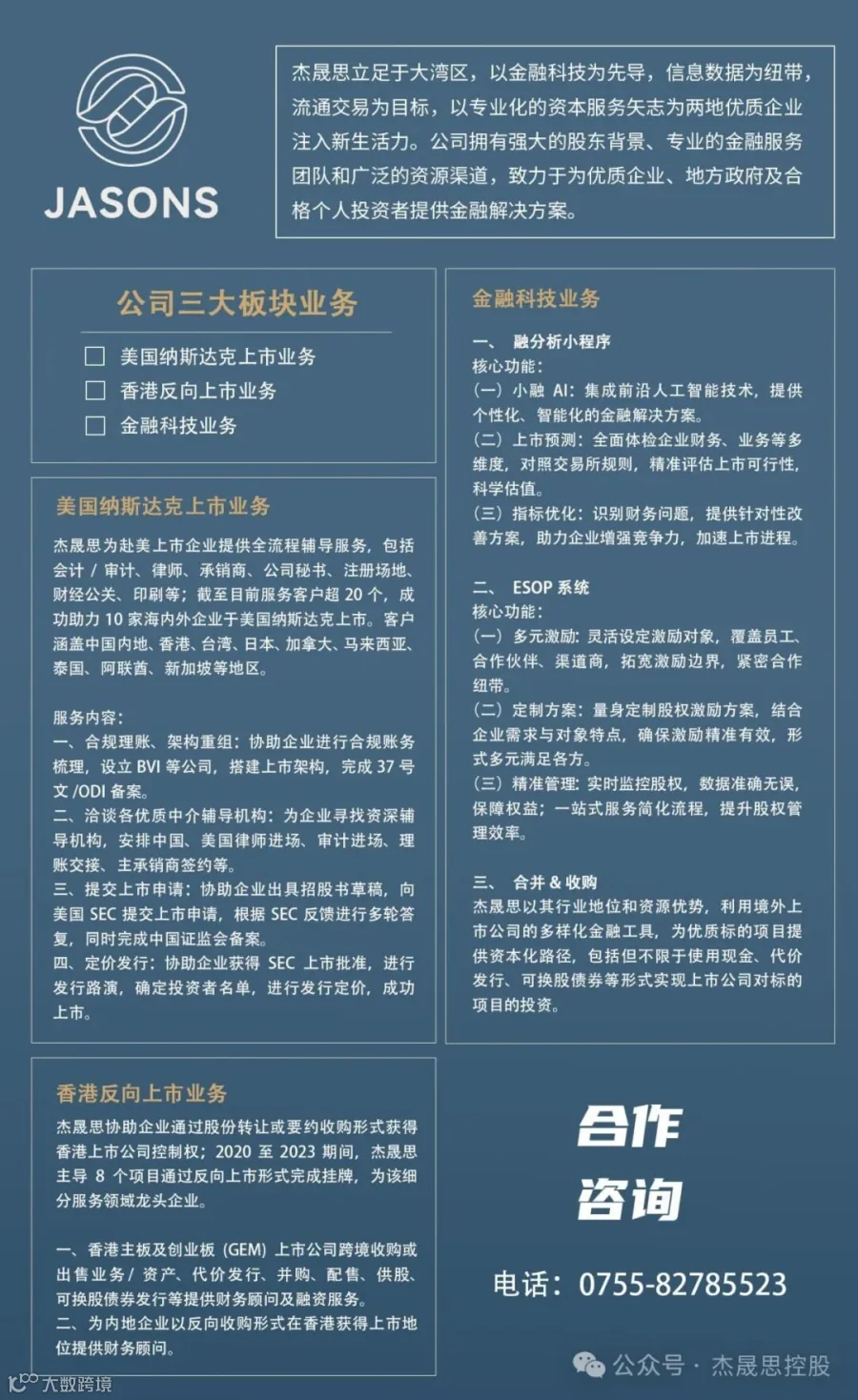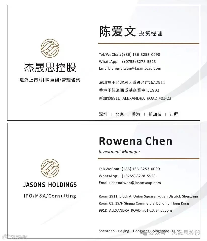 杰晟思资本已成功助力多家优质企业登陆海外资本市场,客户遍及中国内地、香港、台湾、新加坡、日本、加拿大、马来西亚、泰国、阿联酋等地区。扫码获取专业指导,即刻把握资本机遇!