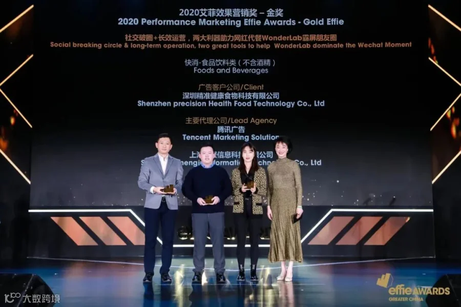 凭借案例“社交破圈+长效运营,两大利器助力网红代餐Wonderlab霸屏朋友圈”,Wonderlab喜获艾菲奖金奖。本届评选金奖获得者共四家,除Wonderlab外,其余三家获奖企业分别为支付宝、屈臣氏和宝洁。