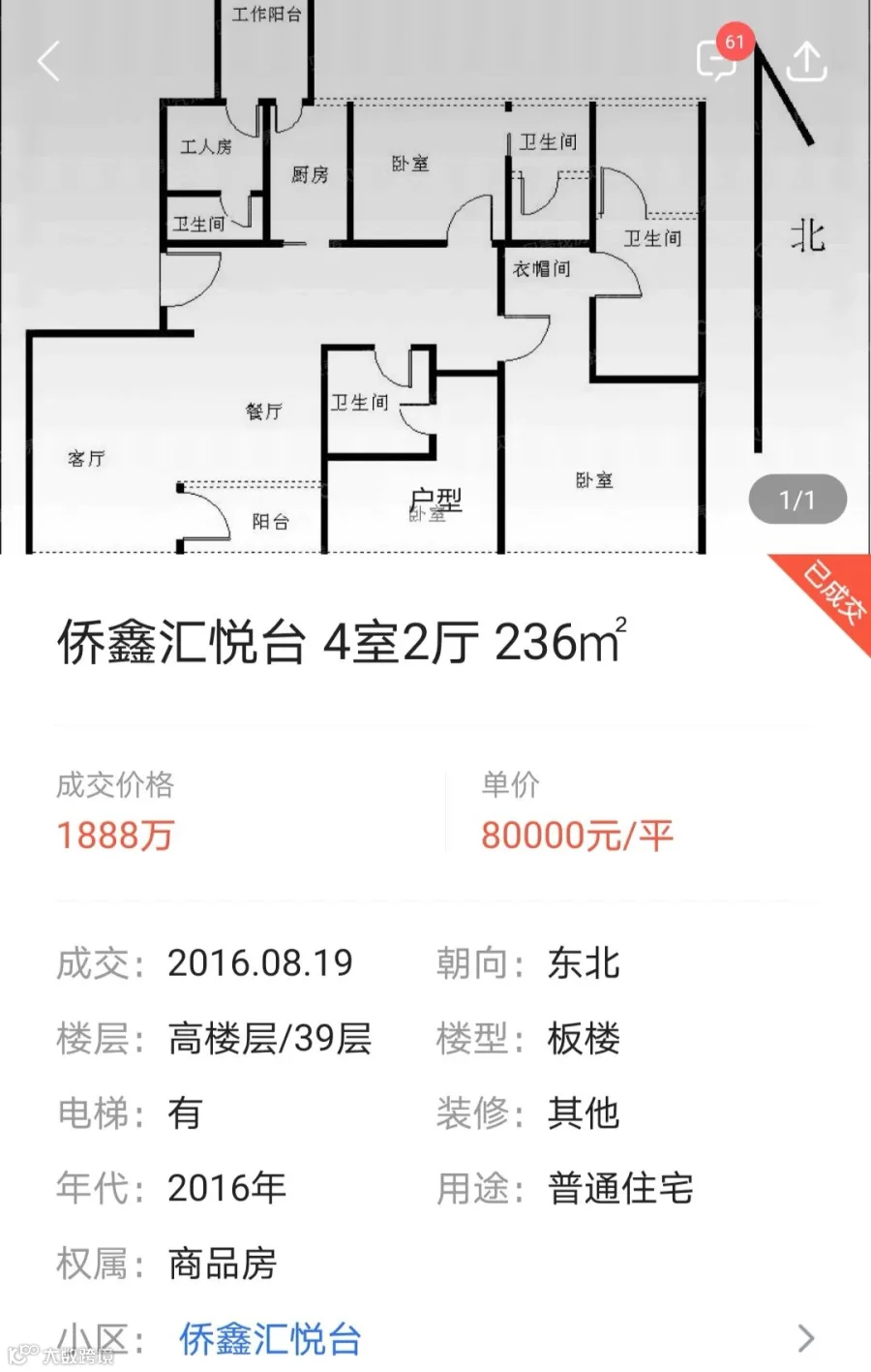 2016年,汇悦台成交过一套236方的四室两厅,单价8万/平。到了2020年11月,贝壳找房的参考均价达到了201899元/平。也就是说,不过4年的时间,汇悦台的成交价翻了近4倍,远超市场平均水平。