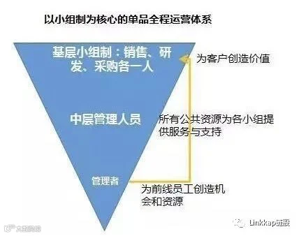 商业生态系统发展已经体现出这样的规律,在企业内部也有同样的规律在逐渐产生。组织层面上组织架构从过去的以企业为中心转向以客户为中心的方式,管理更加扁平,未来一个管理者他可能要管理几十个人,更多的管理是通过赋能方式来帮助被管理者来提升效率。另外就是也会出现这种网络化管理的方式,就是企业不断地去中心化,更多的每个产品中心、每个自主经营体就是一个关键的节点,相应的支持部门更多的去帮助解决问题,赋予他们能力,发挥员工内在的自主性。