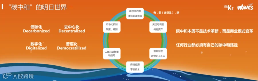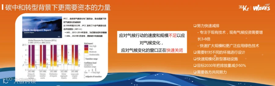 6月9日,凯辉基金合伙人赵晶受邀参加36氪2023新浪潮「WAVES」大会,并发表《双碳下的明日世界》主题演讲,关键要点如下: