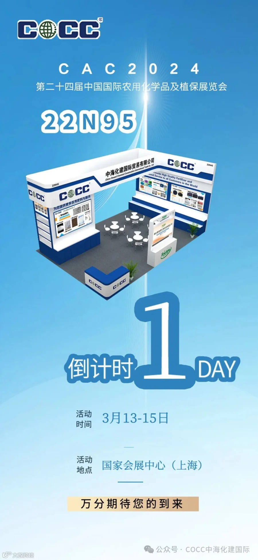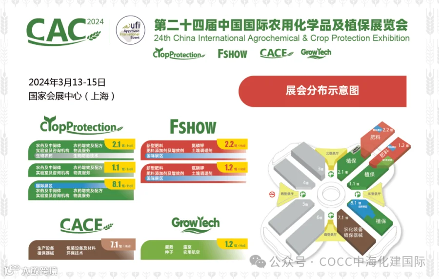 非常感谢您长期以来对中海化建的支持和信任!我公司邀请您参加定于2024年2024年3月13-15日于国家会展中心(上海)参加2024年第二十四届届中国国际农用化学品及植保展览会(CAC)。希望通过这次机会和各位业界同仁们共同探讨和交流,以便我们更加深入的合作。共同开拓和占领市场。诚邀您参加。我们不胜荣幸!