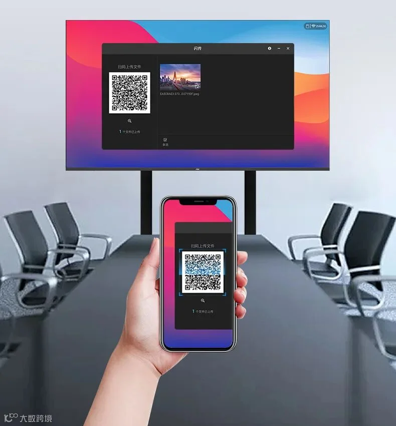 不同于传统电视,会议智慧屏NV系列预装Office APP,可直接打开PPT、Word、Excel、PDF等各类格式文档,将文档内容进行播放展示,应用更智能便捷。有文件需要上传展示时,也无需借助U盘等介质进行“物理”上传,只需手机扫码即可轻松实现图片/文字等文件快速传输,提高会议效率。