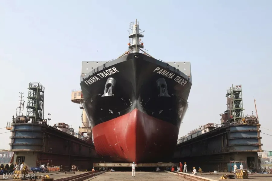11月27日,广东中远海运重工1750TEU集装箱系列7号船N742顺利由1号船台拉移至“翠华山”浮船坞,按计划完成下水节点。