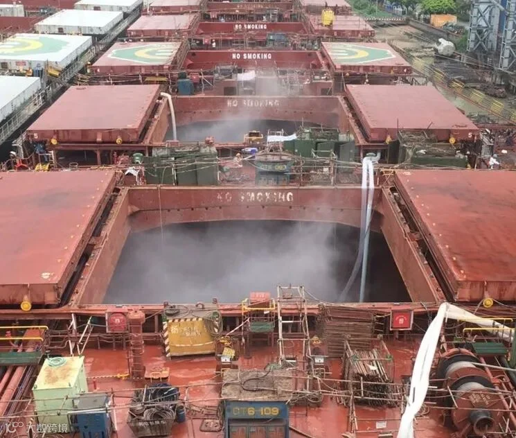 “双节“期间,广东中远海运重工超高压水工程任务重,作业点多,施工节点安排紧凑。“帕特拉”轮修期13日出厂,完成7个货舱超高压水除锈工程;“福州”轮修期17日出厂,完成5号货舱及左右立柱超高压水除锈工程;“基亚纳”轮和“格利法”轮货舱、主甲板、舱口外围、边舱、尾尖舱均有超高压水工程施工;“亿春”、“立睦” 两轮均完成绑扎桥、舱底板、舱盖板超高压水工程。