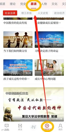 第二步,在最上面一排找到“慕课”,点击进去后,你会看到如下界面: