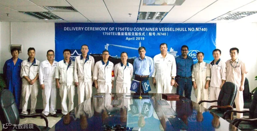 4月25日,广东中远海运重工成功签字交付第二艘1750TEU集装箱船项目(N740),比合同交船期提前112天。该船同时还创造了新船试航后3天时间即签字交付船东的最短时间纪录。至此,广东中远海运重工1750TEU系列船的首制船与二号船均成功实现提前交付。当天,公司总经理苏文伟与船东代表Mr. Mircea Rosca签署交船文件,船级社、制造、经营、技术、质量部门代表参加了仪式。