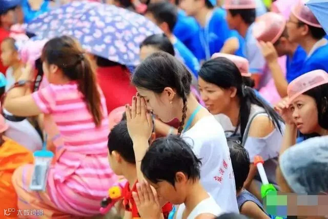 在活动的开始阶段是特别隆重神圣的泼水节祈福仪式,大家都静立默默的祈祷,每个人都许下了自己的小心愿。接着拈花寺住持为大家祈福送上安康。随后在主持人的带领下大家进入真正的泼水环节,大家满满的激情瞬间点燃全场,大家互相泼的是水其实就是一种大家的祝福。一度发生多方“激战”,其中我司寇根根同事在激情之余,有感而发自愿上台高歌一首,赢得了活动举办方和大家的一致好评。