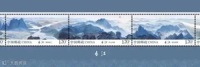 从2014年开始邮政创新邮票版式,创作出了长卷版邮票,我国第一套长卷式邮票就是下图的《长江》特种邮票。