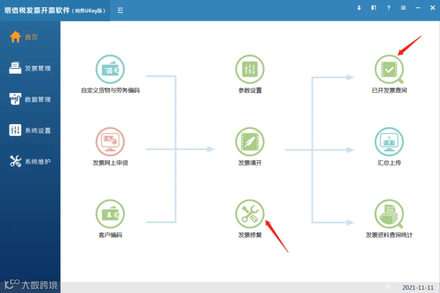 首先,如果在别的电脑上开过票,请选择【发票修复】,弹出窗口后,输入对应的时间,进行发票同步;点击【已开发票查询】,查看:是否作废发票