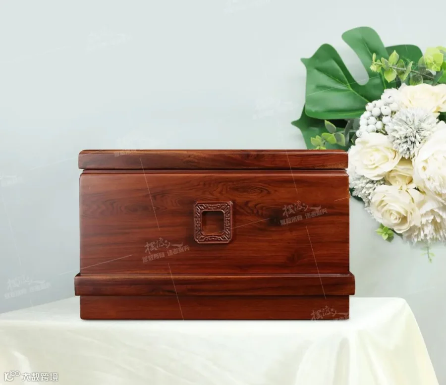 4、紫檀木:紫檀木是我国常见的家具原材,因檀木在佛教中寓意佳,因此常被用来制作庇护灵骨的骨灰盒。其木质特性坚硬耐磨、自带木香,防腐防潮效果佳。由紫檀木制作的骨灰盒大多古色古香、自带绸缎光泽,适合大多数中老年逝者;