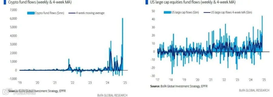 图表4:加密资产:创纪录流入$60 亿(左)